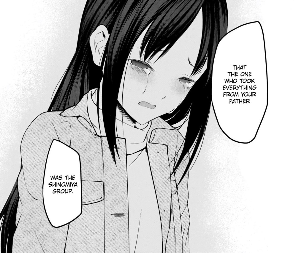 The lastest mention of this subplot gives us the scene where Shinomiya found out that her family essentially ruined the Shiroganes lives. But while it was nice knowing that Oko did the whole job, and the name of the company, there’s very little new information.